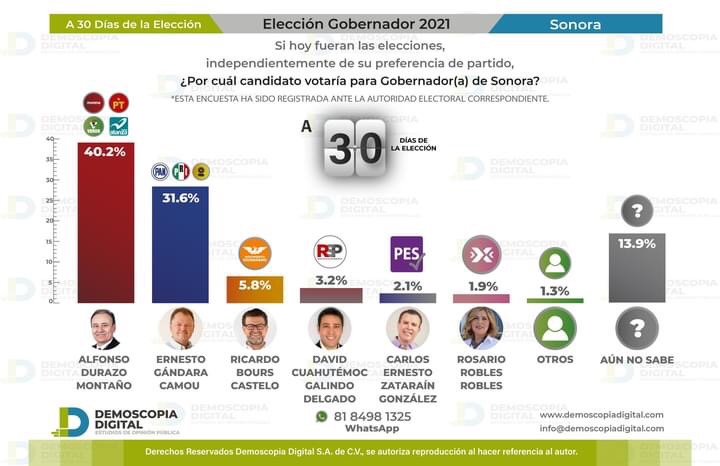 Demoscopia Digital: Preferencia electoral en Sonora | A 5 de mayo, 2021