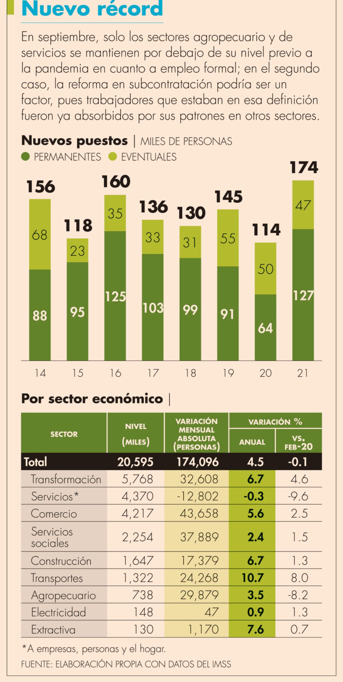 Origen: IMSS alcanza su septiembre más alto en registro de empleo formal con 174,000 puestos de trabajo