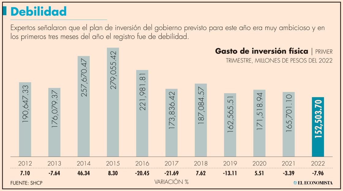 Gasto en inversión física cayó 8%; sumó 152,500 mdp | El Economista